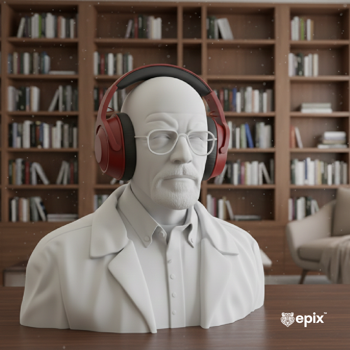 Mbajtëse kufjesh me bustin e personazhit ikonik Walter White nga Breaking Bad, që shërben si një aksesor unik dhe artistik për tavolinën tuaj të punës. Ky bust skulpturor me ngjyrë të bardhë mat dhe detaje precize jo vetëm që mban kufjet tuaja në mënyrë të sigurt, por shton një karakter të fortë dhe modern në ambientin tuaj, duke u bërë menjëherë pika qendrore e vëmendjes për çdo adhurues të kinematografisë.